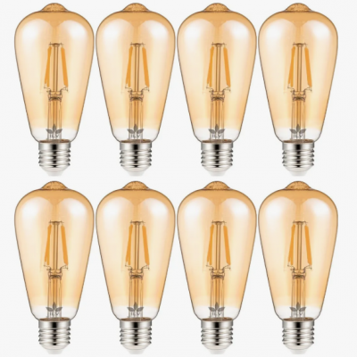 Pack de 8 piezas foco vintage tipo pera Diseño de estilo retro, adecuado para instalación en varios lugares, fuerte efecto decorativo, amplio ángulo de iluminación potencia de 4W Voltaje AC110-130V tipo de base E27 IRC 80 con flujo luminoso de 380lm material de pantalla vidrio y vida útil de 15000h.