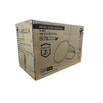 Caja con 60 piezas de panel ajustable de 15W con alto CRI, sin flickeo vidrio más placa de difusión PS y alta transmisión con voltaje AC100-277V IRC 80 y flujo luminoso de 1350lm material de aluminio estampado + campana de difusión de PP. Vida útil de 15000h