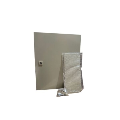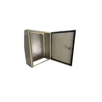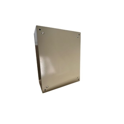 Sistema de gabinetes metálicos para brindar protección a equipos eléctricos, de automatización, electrónicos. Brindan protección contra golpes, agua en chorro o salpicaduras, acumulación de polvo y fibras. Características destacadas Gabinete de construcción monoblock, con tapa inferior, platina galvanizada interna y = puerta montada al cuerpo mediante cejas que conforman una zona hermética. Puerta desmontable con bisagras de perno. * Sello de poliuretano inyectado en interior de puerta. • Acceso inferior con tapa para paso de cableado. • Conexión a tierra en puerta y cuerpo. = Extensa variedad de tamaños; desde 20x20 hasta 160 x 80 cms. = Material de fabricación: Lámina de acero calibre 18 y 20. Material platina: Lámina acero galvanizado calibres 20, 18 y 14. Acabado: Pintura electrostática, acabado texturizado. Color: BEIGE RAL 7032. Tipo de sellado: Sello de hule inyectado de poliuretano (EPDM). Empaque: Caja de cartón.