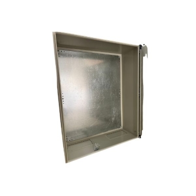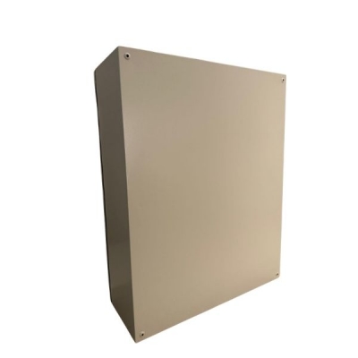 Sistema de gabinetes metálicos para brindar protección a equipos eléctricos, de automatización, electrónicos. Brindan protección contra golpes, agua en chorro o salpicaduras, acumulación de polvo y fibras. Características destacadas Gabinete de construcción monoblock, con tapa inferior, platina galvanizada interna y = puerta montada al cuerpo mediante cejas que conforman una zona hermética. Puerta desmontable con bisagras de perno. * Sello de poliuretano inyectado en interior de puerta. • Acceso inferior con tapa para paso de cableado. • Conexión a tierra en puerta y cuerpo. = Extensa variedad de tamaños; desde 20x20 hasta 160 x 80 cms. = Material de fabricación: Lámina de acero calibre 18 y 20. Material platina: Lámina acero galvanizado calibres 20, 18 y 14. Acabado: Pintura electrostática, acabado texturizado. Color: BEIGE RAL 7032. Tipo de sellado: Sello de hule inyectado de poliuretano (EPDM). Empaque: Caja de cartón.