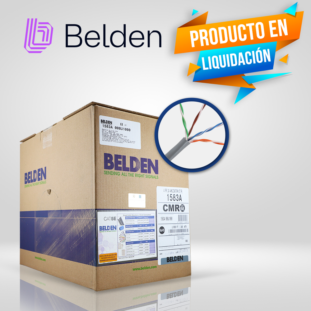 CABLE UTP CAT5E BELDEN 1583A 008U1000 FORRO PVC GRIS CMR 4 PARES 200 MHZ CALIBRE 24AWG 100% COBRE USO INTERIOR ESPECIAL PARA INSTALACIONES SEGURIDAD, CCTV, VIDEO, DATOS REDES ETHERNET BOBINA 1000 PIES 305 METROS